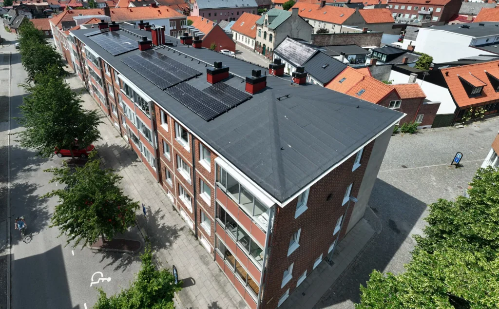 52 paneler på taket till 3-våningshus hos BRF i Ystada